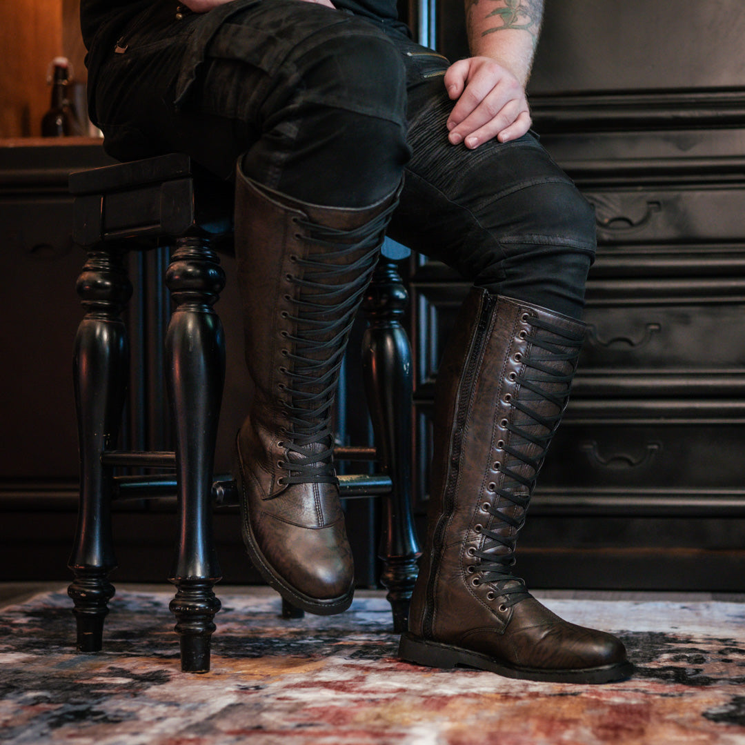 Conquer every realm in the Men's Ares Knee-High Boots, the ultimate choice for LARP enthusiasts and Renaissance faire adventurers. Hand-crafted from premium waxed leather with a breathable sport-lined interior, these boots deliver uncompromising comfort and durability. The Goodyear welt-stitched soles are replaceable, guaranteeing a lifetime of wear with proper care. A padded suede panel at the Achilles tendon flexes naturally with your movements, eliminating the ankle strain common in traditional boots. The slightly wide comfort fit keeps your feet secure without slipping, while the convenient side zipper makes transitions between worlds effortless. Water-resistant and tested through countless muddy LARP battles, these boots handle everything from fantasy quests to historical reenactments. The modern silhouette pairs beautifully with period costumes or contemporary gear, and customize them further with our modular accessory collection. Backed by a one-year warranty, the Ares Knee-High Boots are engineered to become your most legendary footwear investment.
