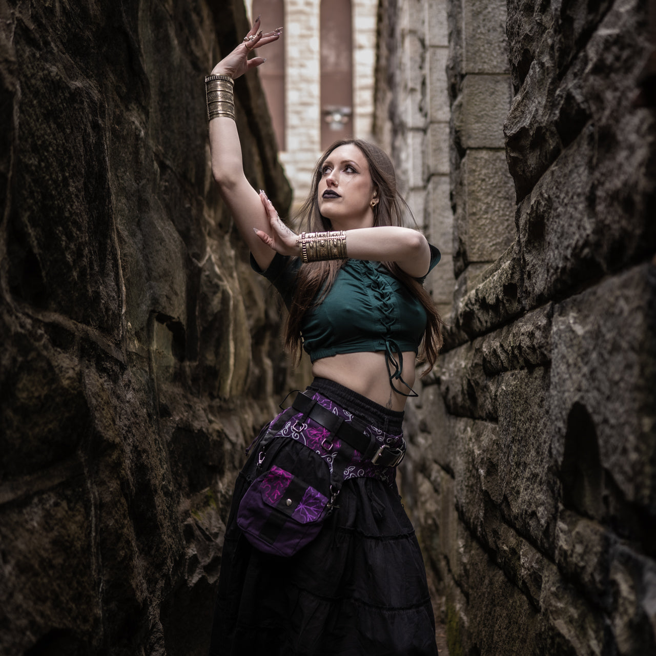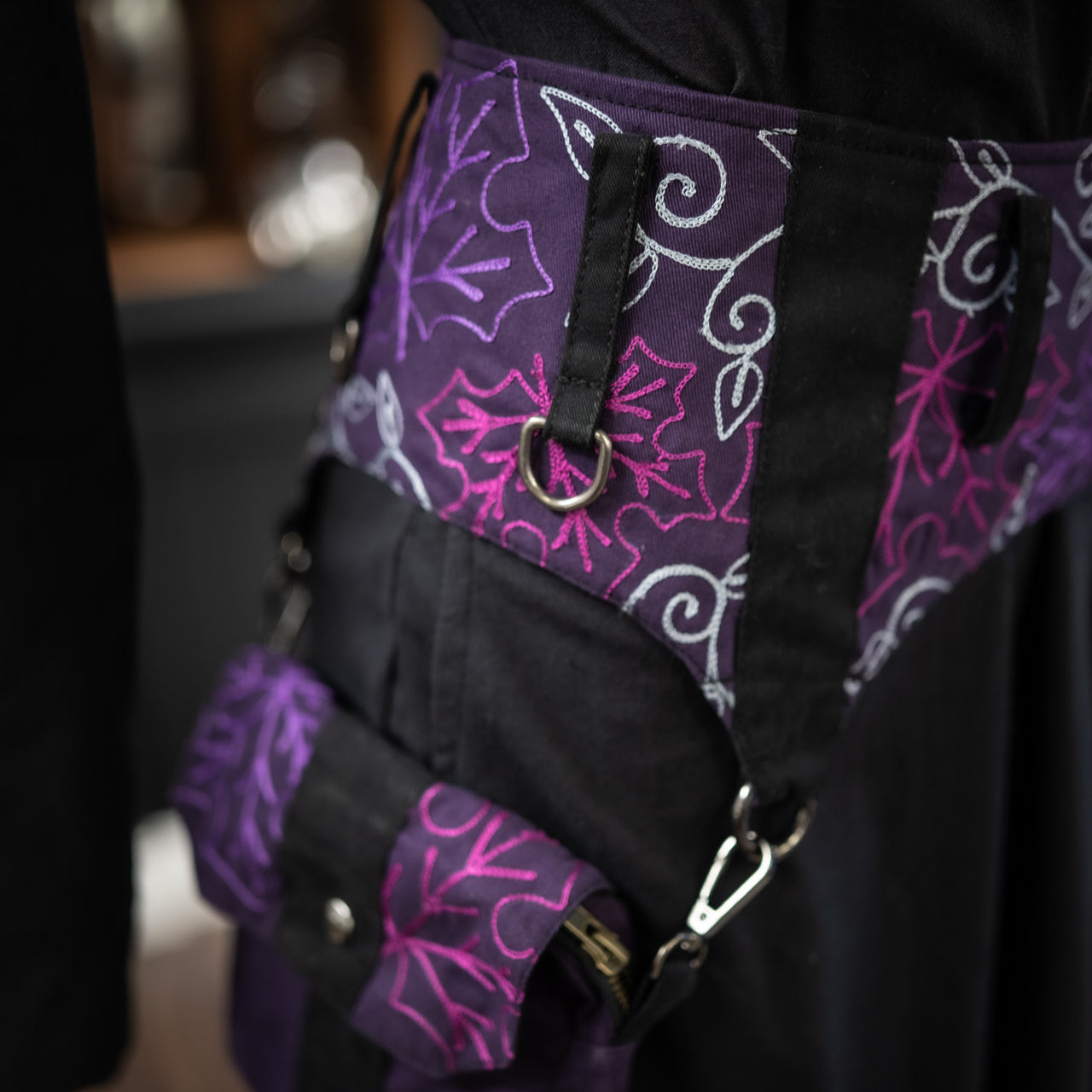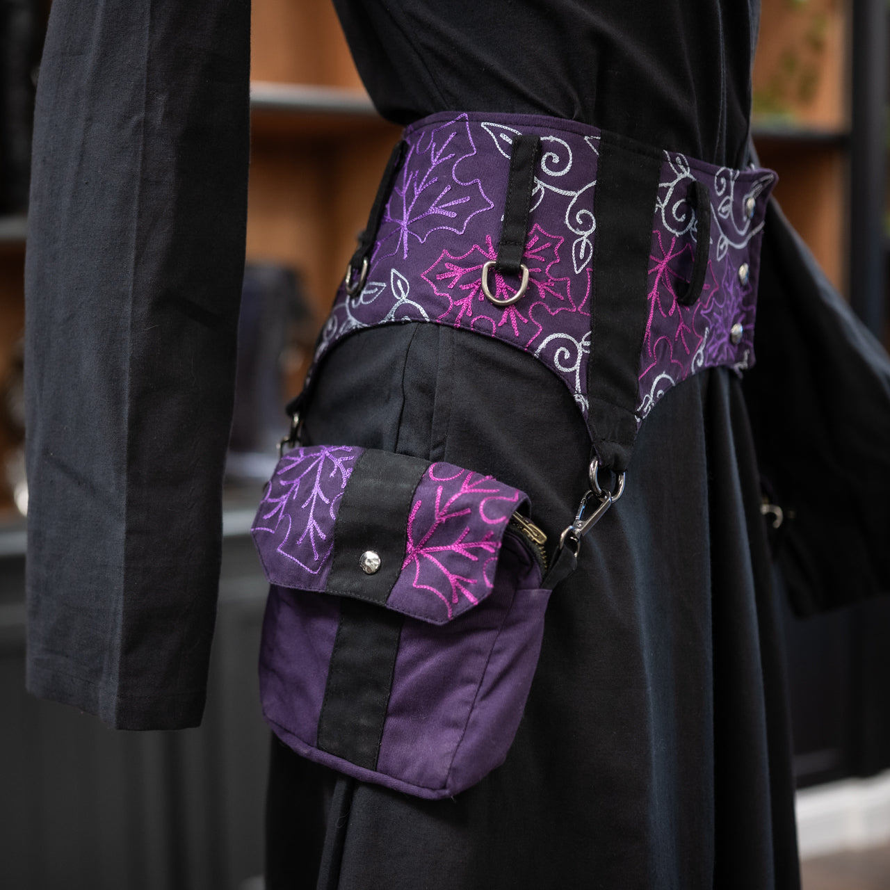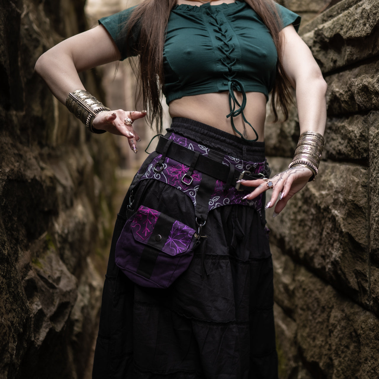 Carry your treasures in true medieval fashion with the Heartseeker Pocket Belt, an essential accessory for Renaissance Faire enthusiasts and LARP adventurers alike. Crafted from sturdy cotton with enchanting leafy embroidery, this adjustable belt features two removable pockets perfectly positioned at your hips for storing coins, potions, and quest essentials. The lace-up back design ensures a custom fit across multiple sizes, while decorative belt loops and front buttons add authentic period charm. Whether you're traversing a faire grounds or embarking on your next fantasy adventure, this versatile pocket belt seamlessly blends practical storage with whimsical woodland aesthetics. Transform your costume or everyday wardrobe with a touch of fae-inspired magic.