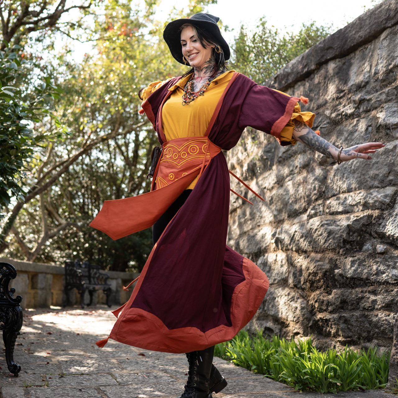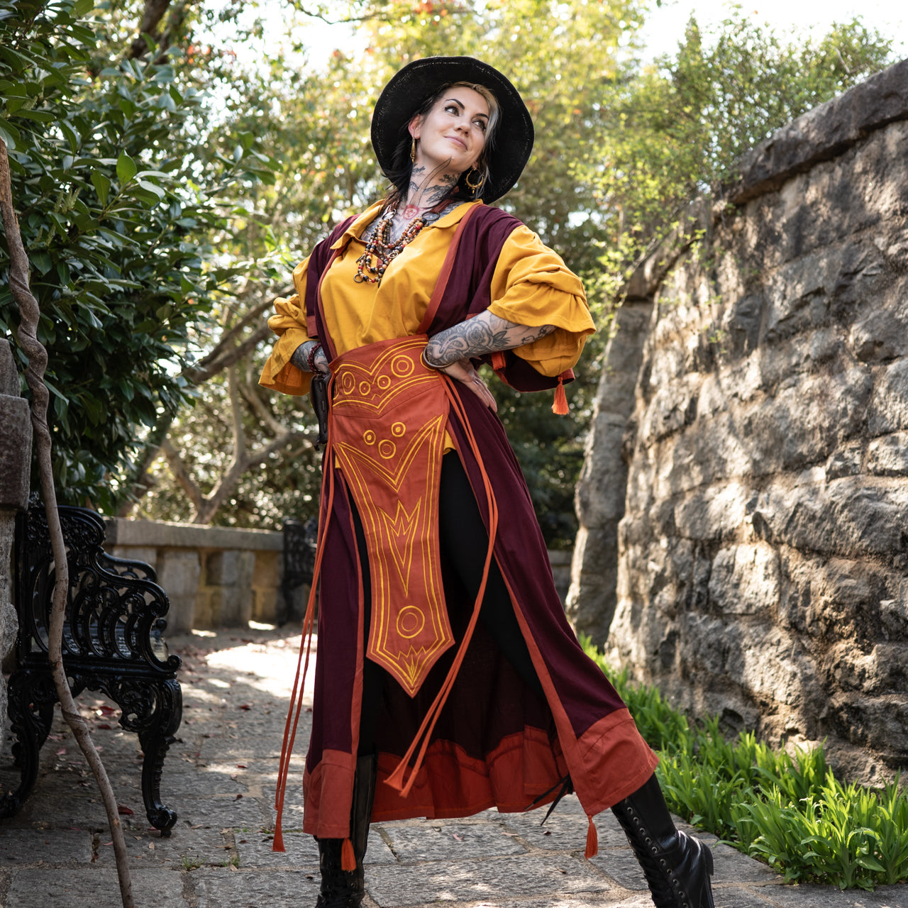 Introducing our Highperch Wizard Surcoat! It's soft cotton blend is the perfectly cozy garment for those long nights pondering your orb. Tassels adorn the open, short sleeves for a bit of extra, magical flair. Since this item is short sleeved, it can easily be worn to perform summer magic or winter magic, as it can easily be layered with our Highperch Wizard Shirt! Add even more drama by including the Highperch Wizard Belt with your look as well! For a perfect final touch, don't forget the magical Highperch Wizard Arm Warmers to help add a +1 modifier to your spell casting ability!