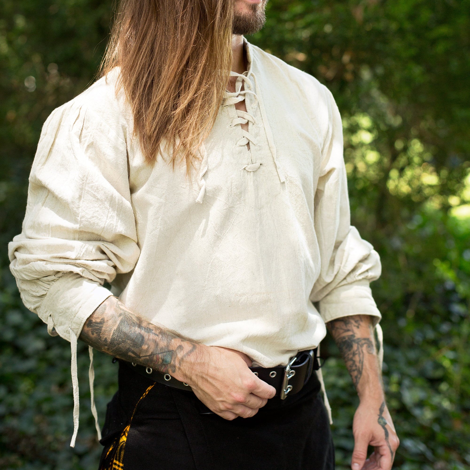 Embrace your inner adventurer with this Medieval Tunic; the ultimate LARP and Renaissance Faire essential. Built from premium 100% woven cotton, this historically inspired garment combines authentic period styling with everyday wearability. The hand-dyed fabric offers genuine character while delivering the breathability and warmth needed for spring and fall events. Featuring a functional lace-up collar that echoes medieval design, this tunic works perfectly for Renaissance enthusiasts, LARP participants, pirates, peasants, bards, and travelers alike. The relaxed, flowing silhouette provides unrestricted movement and flatters all body types across every season. Meticulously hand-stitched for durability, this piece withstands countless adventures. Easy care, simply machine wash, hang dry, and iron when needed. Transform your wardrobe with this timeless LARP staple that captures the spirit of medieval authenticity.