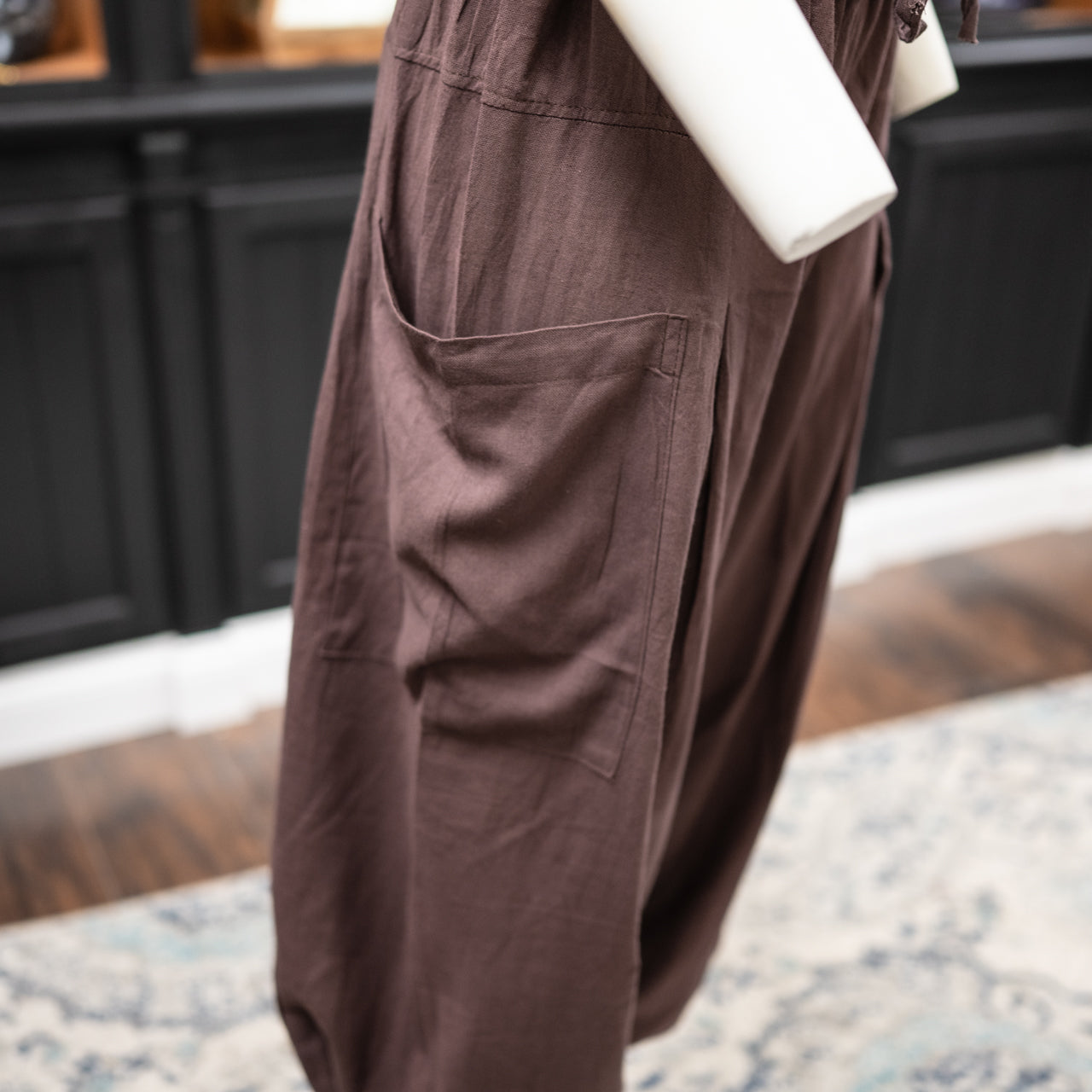 Crafted from sturdy cotton, these Tradesman Pants are the quintessential garment for any adventurer's wardrobe. Whether you're traversing the realm for labor or donning your finest fantasy attire at Renaissance faires and LARP gatherings, these breeches deliver comfort and versatility. The lightweight fabric suits spring through autumn journeys, yet layers seamlessly beneath wizardly robes or armor for winter expeditions. An elastic waistband ensures ease of movement during your quests, while practical pockets keep your essentials close. Available in earthy tones that blend effortlessly into both modern life and medieval-inspired ensembles, these pants are a timeless choice for the modern-day warrior seeking authentic fantasy clothing that transitions from everyday wear to immersive roleplay adventures.
