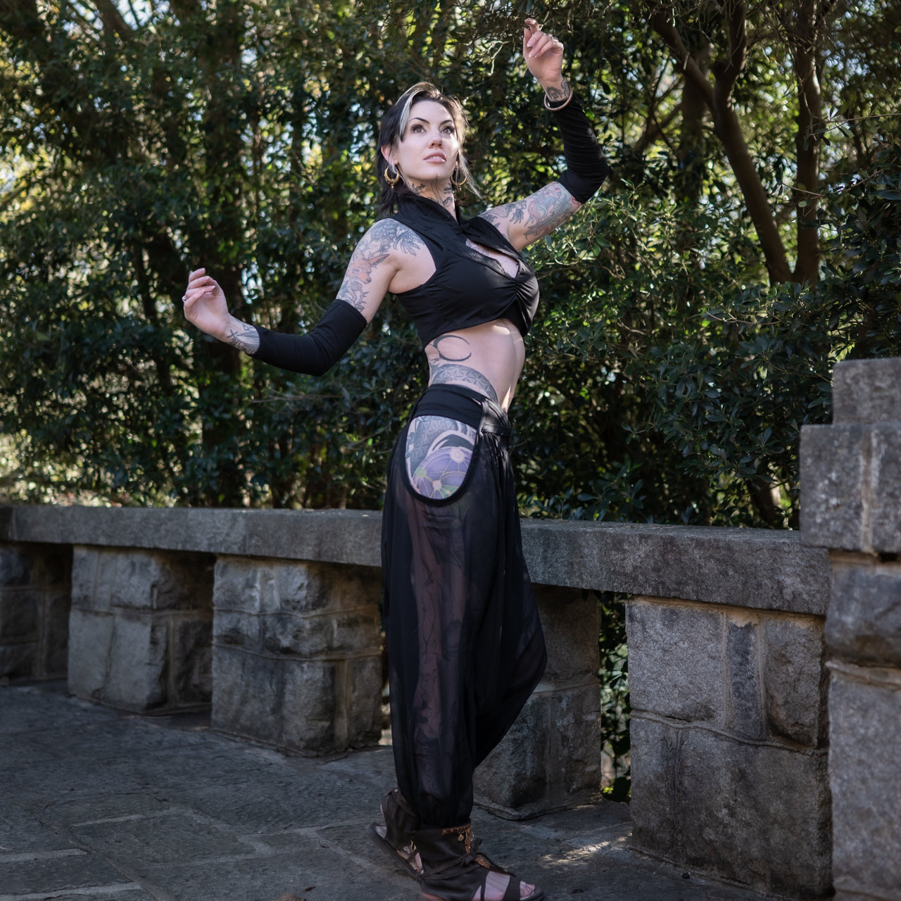 Embrace your inner enchantress with the Whisperveil Harem Pants, a captivating choice for Renaissance faire enthusiasts, LARP adventurers, and medieval fantasy lovers alike. These flowing pants blend romantic elegance with practical comfort, featuring a soft cotton-blend waist that stretches to fit various sizes and billowing chiffon fabric that moves with theatrical grace. Perfect for belly dance performances, fantasy gatherings, or immersive roleplay events, they drape beautifully to accentuate your silhouette while allowing freedom of movement. Pair with the Whisperveil Armlets and Bralette to complete your mystical ensemble and command attention at any medieval-inspired celebration or fantasy event.