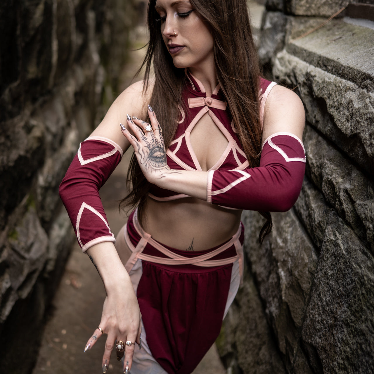 Behold the Whisperveil Armlets, enchanted adornments worthy of a noble's court. Crafted from sumptuous cotton blend fabric, these elegant arm wraps drape gracefully upon the wearer, evoking the mystique of ancient kingdoms and distant lands. Perfect for belly dance performances, costume gatherings, or anyone seeking to channel their inner sorceress, these armlets transform any ensemble into a vision of regal splendor. Pair them with the Whisperveil Bralette and Harem Pants to complete your legendary look. Soft, breathable, and designed for movement, these armlets are the perfect accessory for those who dare to captivate.