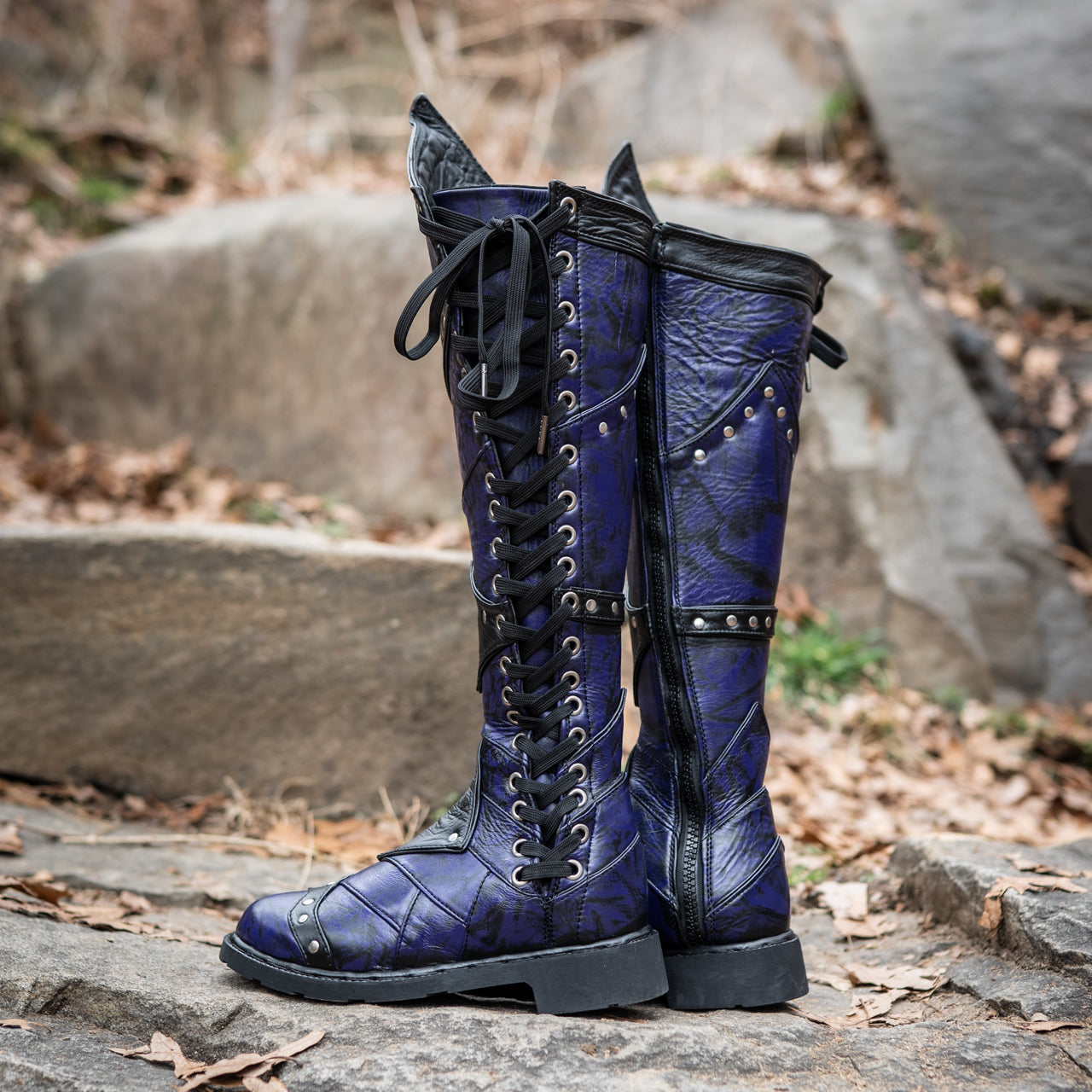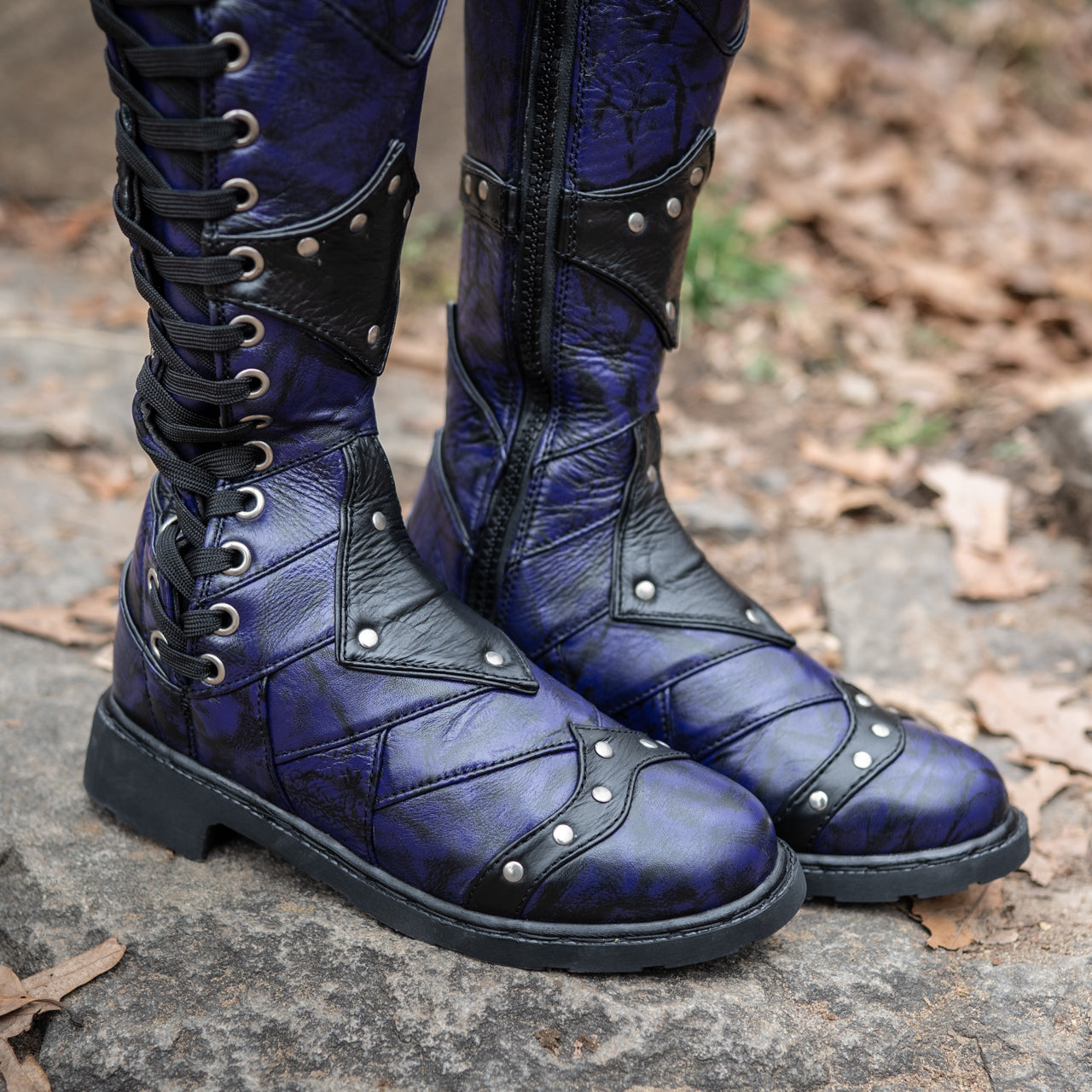 Behold the Bramblewood Boots—legendary footwear forged for the discerning adventurer. Handcrafted from premium real leather, these over-the-knee boots channel the ethereal grace of woodland elves with authentic fantasy-inspired design. Built for both beauty and battle, they feature a 1.5" heel lift, Goodyear welt-stitched V-tread soles engineered for miles of exploration, and moisture-wicking athletic lining. Double-stitched load-bearing panels, nylon-backed friction grommets, and replaceable soles ensure heirloom durability. Comfort-fit sizing accommodates small to medium calves, with custom options available. Includes branded metal-tipped laces and subtle zippers for ease. Water-resistant leather accepts waterproofing treatment. Whether traversing LARP battlefields, Renaissance faires, or everyday realms, these boots deliver unmatched craftsmanship and timeless style. Customize with alternate lace colors and accessories to suit your quest.